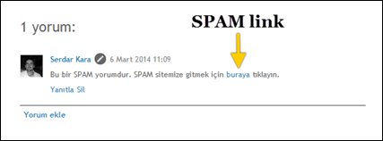 Bu teknikle yorumdaki “buraya” kelimesine dokunmayacağız fakat buraya kelimesinin tıklanabilirliğini ortadan kaldıracağız. Yani yorum, linksiz bir yorum olacak.